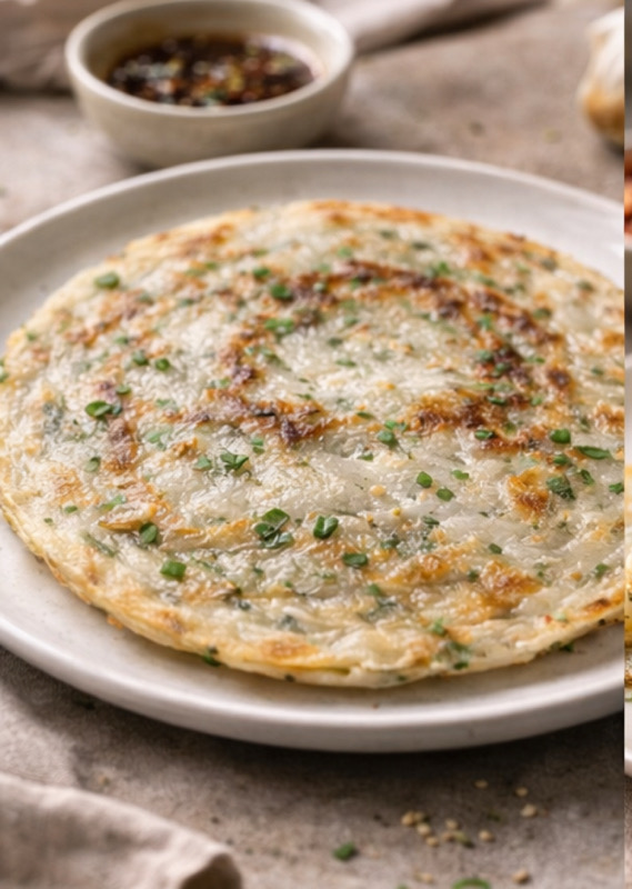 Galette traditionnelle chinoise à la ciboule, croustillante et pate fine , dorée à la poêle